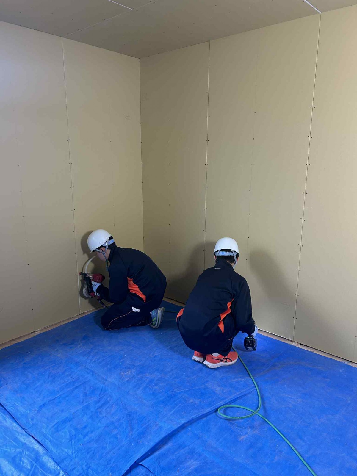 見るのも使うのも初めて?かもしれないビス打ち機とインパクトドライバーを使ってとめていきます。