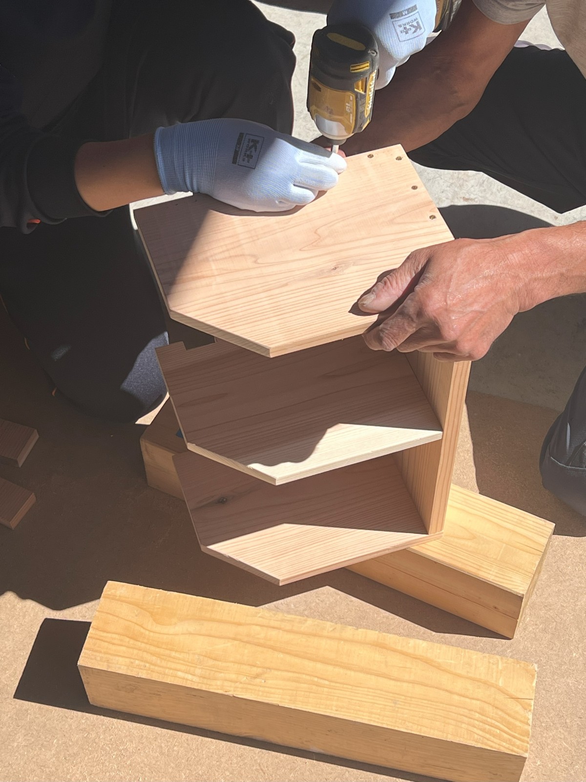 途中で隙間があいてしまったときは、やり直そうと声をかけ、完成物は綺麗な仕上がりとなっていました。