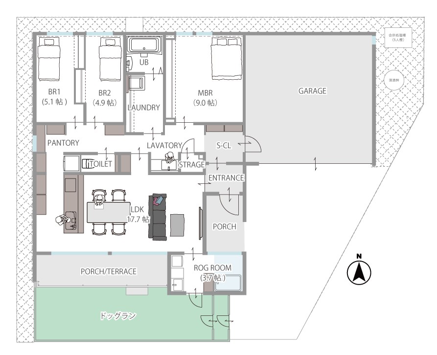 「キッチン ↔ パントリー ↔ ランドリー」などの生活動線をコンパクトにまとめられる。